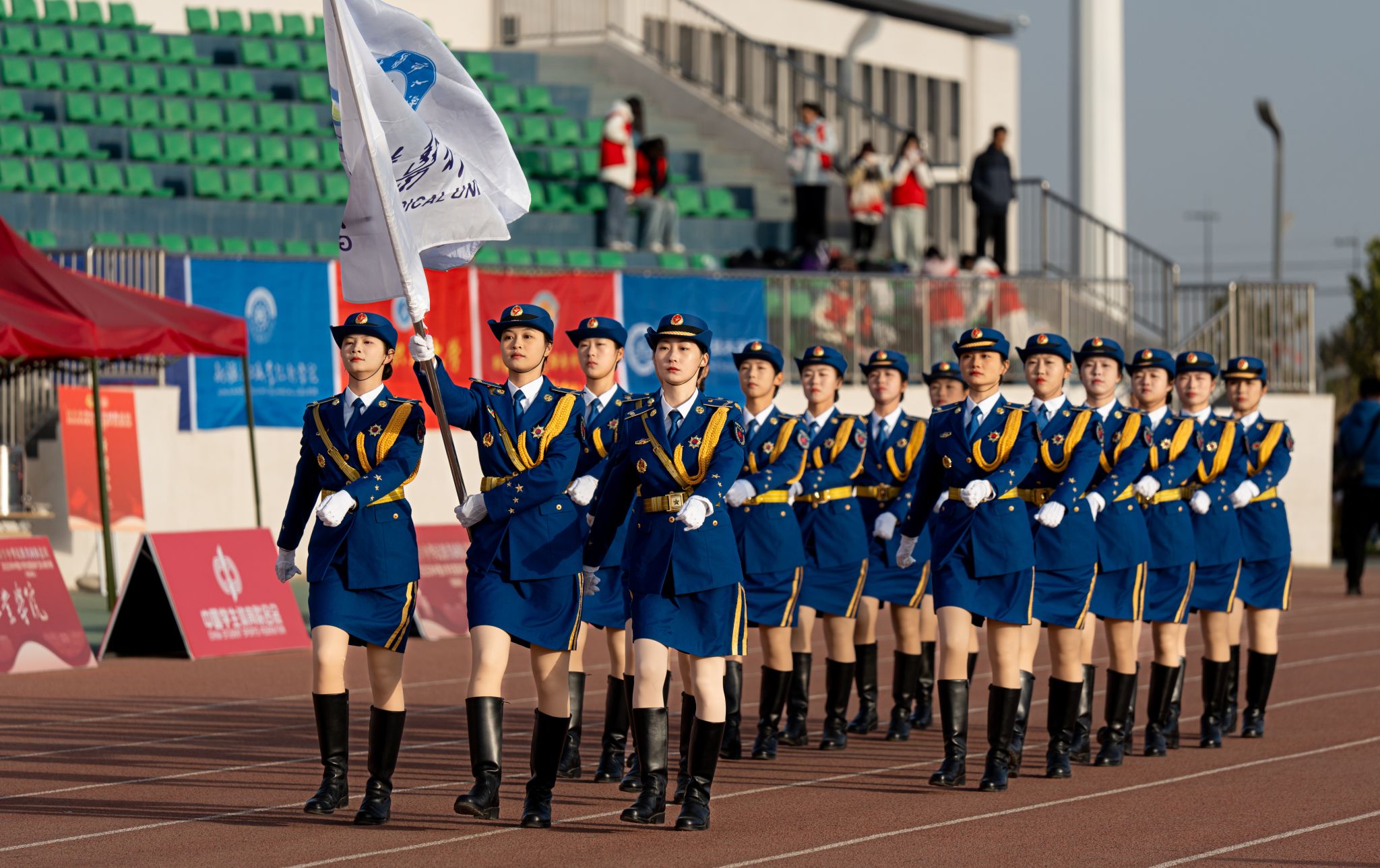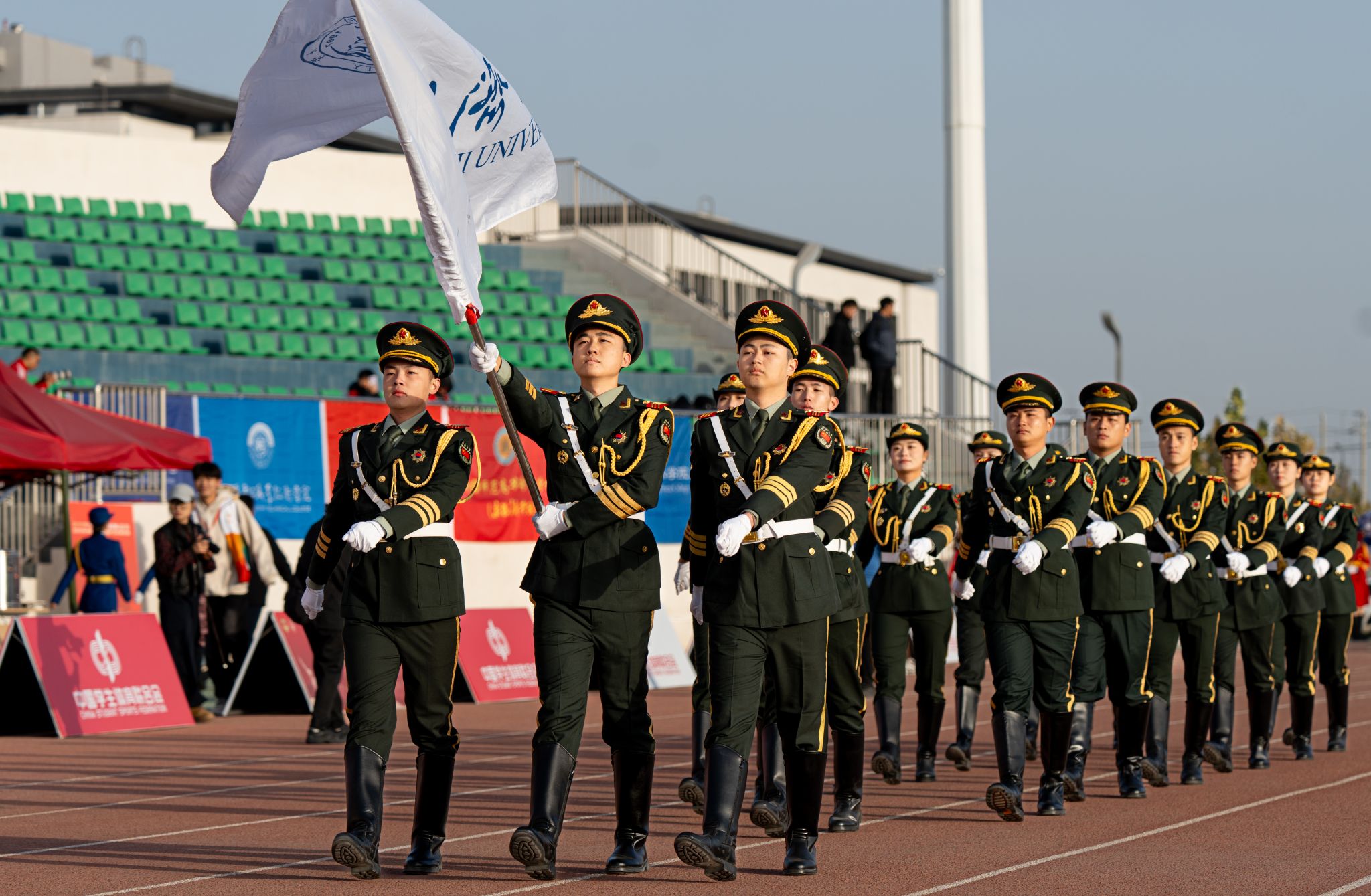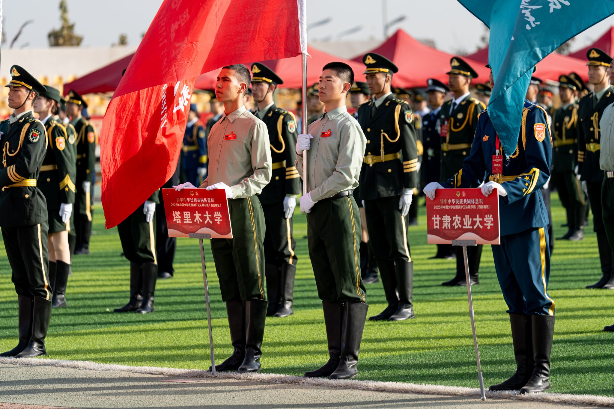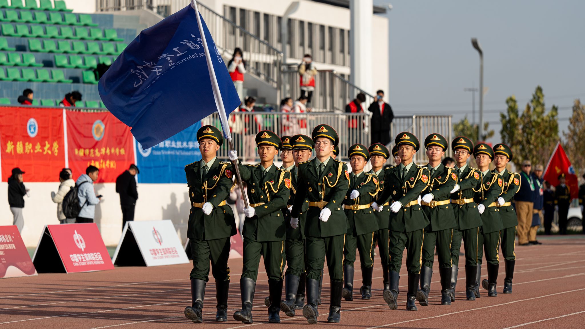 赛事分为公开组(非西部赛区省份院校)、甲组(普通组)和乙组(高职高专组)3个赛道,各设男子组、女子组和混编组3个组别。在未来3天的比赛时间里,参赛队伍将通过升旗展示和队列动作2个项目一较高下,评委将从动作规范、精神风貌、团队协作等多个维度进行现场评分。