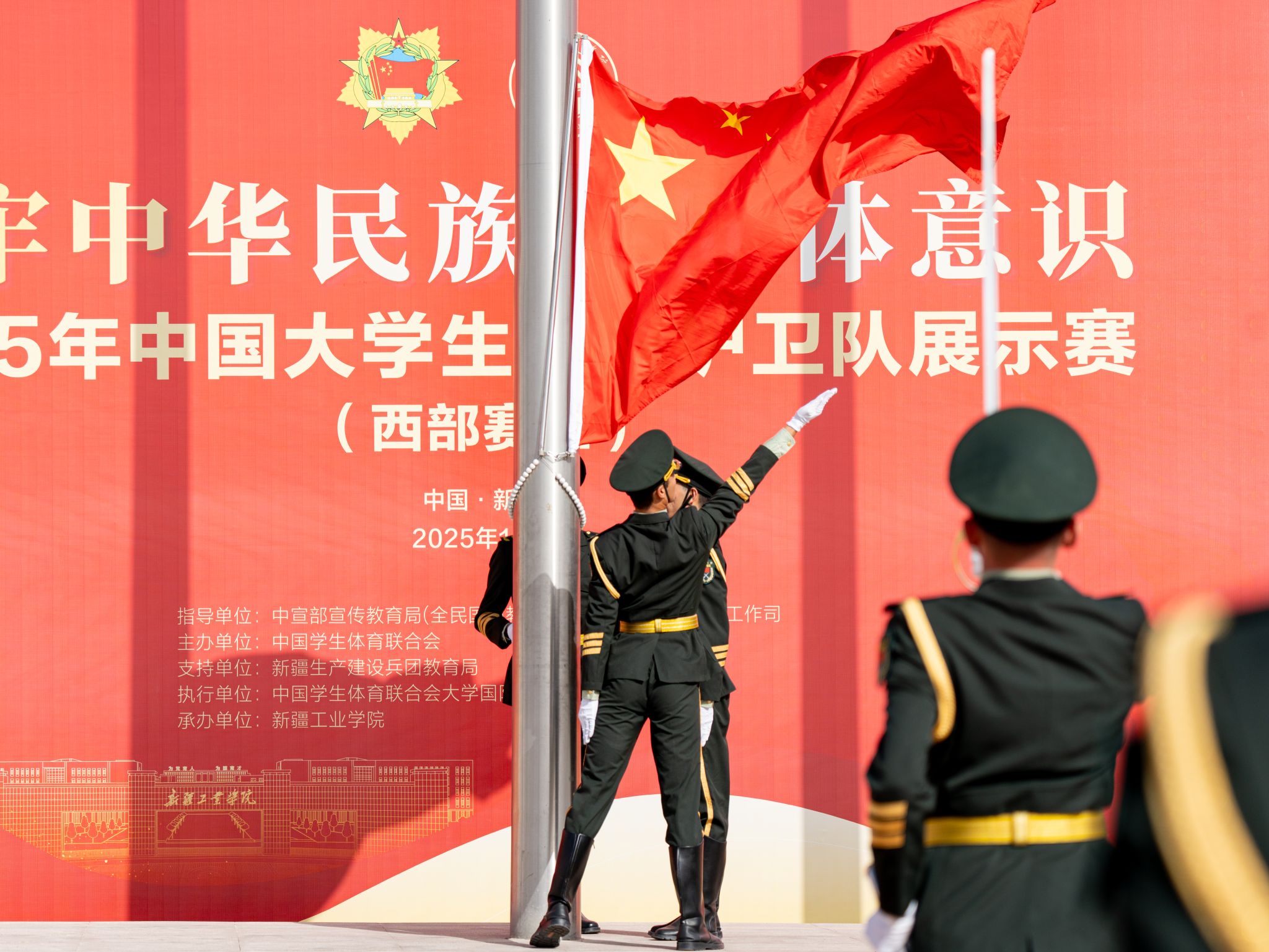 据了解,中国大学生国旗护卫队展示赛是由中宣部、教育部等部门联合指导的重要赛事,迄今已吸引全国百余所高校参与。本次西部赛区比赛由中国学生体育联合会主办,beat365正版唯一官方网站为首次承办。该赛事以沉浸式教育的方式将红色血脉注入青春力量,使护旗行动成为传承理想信念的重要载体,有力推动了各高校间的爱国教育交流实践,使新时代的青年学子在磨砺中勇于担当,在实践中不断成长,进一步筑牢了爱国强军的思想根基。