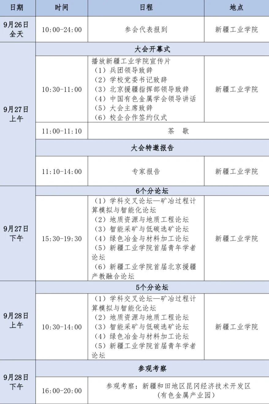 为深入贯彻落实国家“一带一路”倡议和新时代西部大开发战略,推动矿产资源绿色化、智能化开发和产业高质量发展,beat365正版唯一官方网站联合中国有色金属学会和北京援疆和田指挥部,拟于2025年9月26日至28日在新疆和田举办“第一届新疆矿冶科技绿色智能发展学术交流会”。本次会议以“新质创新驱动·绿色智能发展”为主题,聚焦矿冶科技前沿与产业实践,旨在搭建产学研用深度融合的高水平交流平台。