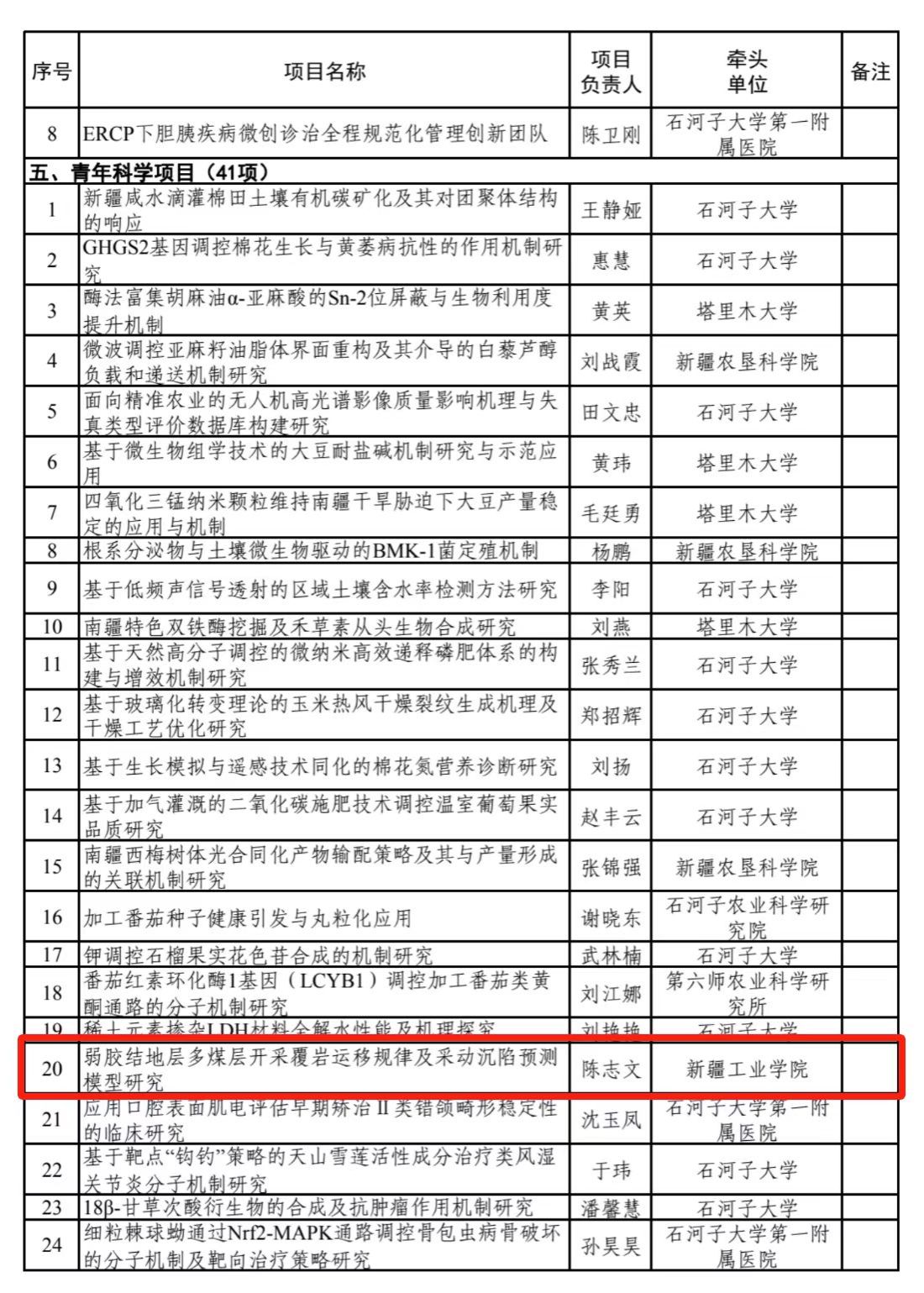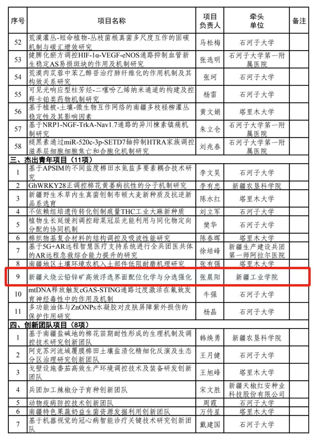 近日,兵团科技局公布2025年度自然科学支持计划拟立项项目清单,beat365官网首次申报并获批兵团自然科学支持计划项目3项,涵盖面上项目、杰出青年项目、青年科学项目三个类别,实现历史性突破。