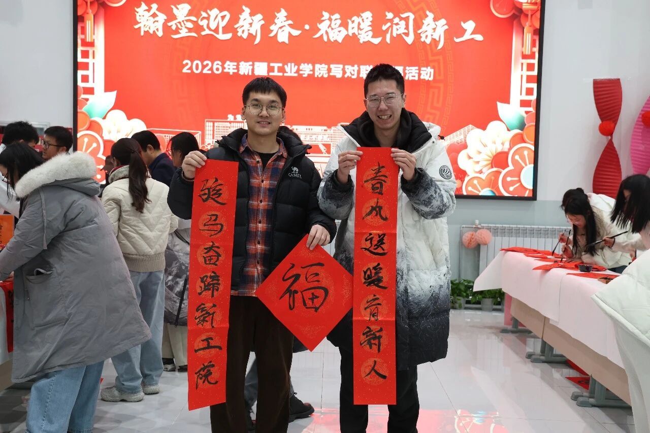 1月21日,beat365正版唯一官方网站墨香四溢、暖意融融,一场“翰墨迎新春·福暖润新工”写对联送福活动将校领导与师生齐聚一堂,共赴这场充满年味的文化盛宴,校园满溢着新春的喜庆与师生同心的暖意。