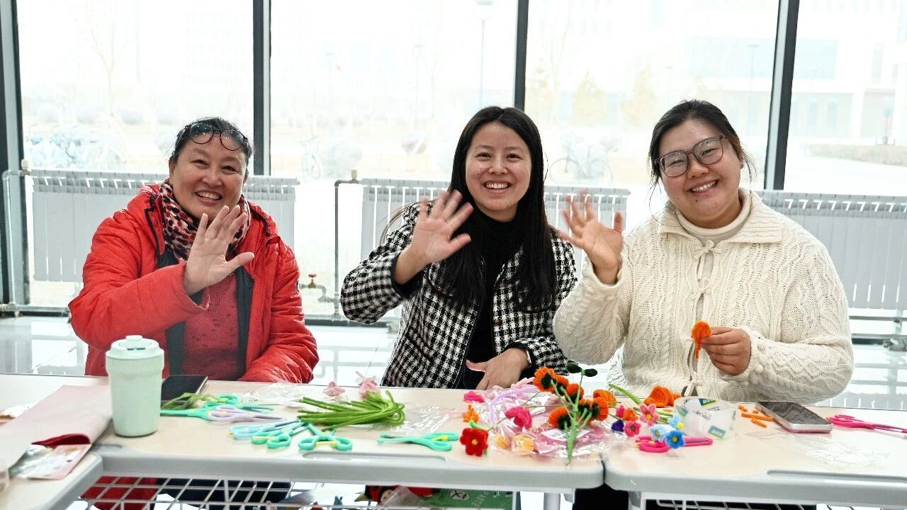美工体验区里,同学们亲手编织灯笼、剪裁窗花,指尖翻飞间勾勒出新春的美好意象。“我现在还在排队等校长给我写‘福’字,我感觉这次活动特别有年味儿。”参与活动的大一学生闫子昂说道。