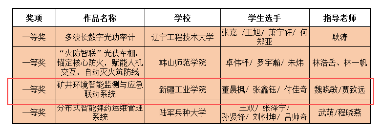 比赛期间,在魏晓敏、贾致远老师的指导下,大数据与信息工程学院学生董晨枫、张鑫钰、付佳奇组成的团队紧密围绕国家能源安全战略,聚焦南疆矿产资源的高效开发与智能技术产业化应用,针对传统矿井监测构建了一套集多维环境参数感知、实时监测与应急联动于一体的仿真系统,最终凭借《矿井环境智能监测与应急联动系统》,在全国总决赛中再创佳绩,夺得一等奖。
