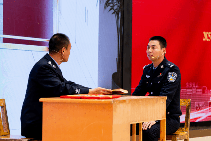 本次活动以自治区七十载壮丽征程为脉络,通过“孕育而生”“峥嵘岁月”“忠诚奋进”“薪火相传”四个华彩篇章,综合运用纪实短片、情景演绎、现场讲述与舞台视听艺术,全方位、多角度生动展现了新疆公安民警守护边疆安宁的奋斗历程。从反恐维稳前沿的刀光剑影到社区街巷的春风化雨,从痕迹鉴定领域的明察秋毫到边境线上的孤独坚守……一个个闪耀的名字,一幕幕生动的演绎,一段段深情的讲述,将公安英模们用热血与奉献谱写的英雄赞歌化为可感可触的动人故事,深深触动着在场的每一位师生。