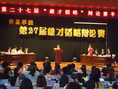 4月14日晚六时,我校第27届“雄才韬略”辩论赛半决赛、决赛在大学生活动中心如期举行。法政学院辩手一路过关斩将,最终摘得本届“雄才韬略”辩论赛的桂冠。beat365党总支书记崔秀花教授、团总支书记黄春建、辩论队指导老师张磊以及广大学生到场观看并为参赛辩手加油助威。