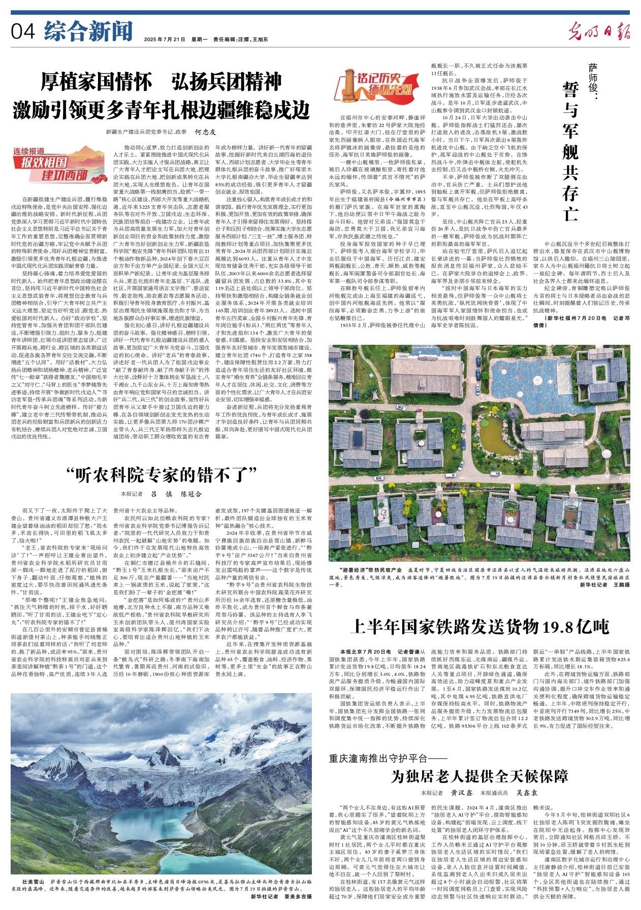 在新疆组建生产建设兵团,履行维稳戍边特殊使命,是党中央治国安邦、强化边疆治理的战略安排。新时代新征程,兵团党委深入学习贯彻习近平新时代中国特色社会主义思想特别是习近平总书记关于青年工作的重要思想,完整准确全面贯彻新时代党的治疆方略,牢记党中央赋予兵团的特殊职责使命,用好兵团精神宝贵财富,激励引领更多优秀青年扎根边疆,为推进中国式现代化兵团实践贡献青春力量。坚持凝心铸魂,着力培养爱党爱国的时代新人。始终把青年思想政治建设摆在首位,...